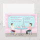 Transformez le lieu de la fête d'anniversaire en un café élégant, branché et stylé et profitez d'un après-midi de thé détendu tout en contemplant la magnifique tour Eiffel au loin. Cette invitation est parfaite pour cela avec deux jeunes femmes en tenue à la mode, l'une avec des lunettes de soleil et une jupe à imprimé zèbre rose, l'autre en chemisier et pantalon élégant. Personnalisez facilement avec les détails de votre fête sur la fenêtre. Idéal pour les jeunes filles de l'âge de 12 à 25 ans.