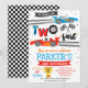 Cartes d'invitation pour 2ème anniversaire de voiture de course rouge deux fois plus rapide