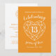 Invitations de 13e anniversaire de mariage à la citrine orange et blanc avec un simple contour de cœur en art linéaire. Personnalisez avec vos propres détails de fête de mariage. Le 13e anniversaire est associé au gemme citrine et le cœur symbolise l'amour. Graphiques et conception de Sarah Trett pour www.mylittleeden.com sur zazzle.