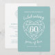 Graphiques de ligne d'art de pierre de cœur simple avec effet, gris, bleu aqua et blanc, invitations pour 60ème anniversaire de mariage de diamant. Personnalisez avec vos propres détails de fête de mariage de diamant soixantième. Le 60ème anniversaire est traditionnellement associé aux diamants et le cœur symbolise l'amour. Graphiques et conception de Sarah Trett pour www.mylittleedenweddings.com sur zazzle.