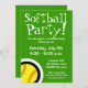 Cartes d'invitation pour fêtes de softball pour Anniversaires et BBQ. Texte et couleur de fond personnalisables. Amusez-vous !