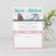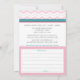 Cartes d'invitation pour la douche de la mariée 'Étoffer la Cuisine' mignonnes et modernes, conçues dans des tons rose, sarcelle et gris avec un motif chevron, imprimées sur mesure avec les détails de la douche de la future mariée, et comprenant une carte de recette (environ 3" x 5") pour que vos invités la remplissent et la détachent (non perforée) pour vous l'apporter en cadeau lors de votre célébration.