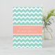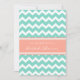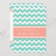 Invitations de douches nuptiales dans élégantes peach rose orange, turquoise turquoise bleu et blanc rétro et décontracté chevron zigzags raypes motif, chic et féminin, personnalisable avec vos détails de douche. Également disponible en cartes de remerciement et invitations pour la fête de mariage.