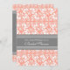 Invitations de douche nuptiale dans élégante pêche rose orange, gris et blanc classique floral damassé vintage motif, chic et féminin, personnalisable avec vos détails de douche. Disponible également dans les cartes de remerciements et les invitations pour la fête nuptiale.