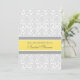 Invitations de douche nuptiale dans élégant citron jaune, gris et blanc classique floral damassé vintage motif, chic et féminin, personnalisable avec vos détails de douche. Disponible également dans les cartes de remerciements et les invitations pour la fête nuptiale.