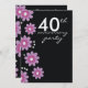 Voici une invitation de fête pour un 40e anniversaire de mariage Trendy Ruby pour rendre l'événement marquant spécial et mémorable.Les fleurs de lavande sur fond noir ajoutent une touche moderne et élégante à votre invitation de fête d'anniversaire de mariage.J'ai choisi l'option papier feutré pour donner une finition en relief et ajouter une touche d'élégance.Vous pouvez également consulter d'autres types de papier !