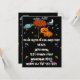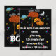 Invitation à Halloween avec un ciel noir, un croissant de lune, un Saturne coloré, des nuages et de nombreuses étoiles colorées. Une famille de citrouilles mignonne debout à côté d'un arbre avec des feuilles d'automne orange et un gros BOO ! Avec des yeux au-dessus des lettres qui vous invitent à une fête d'Halloween de récolte très mais pas trop effrayante. Parfait pour la fête d'Halloween de récolte de l'église aussi !
