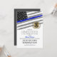 Cartes d'invitation amusantes pour la soirée de remise des diplômes de l'académie de police avec un drapeau de police à l'aquarelle avec une fine ligne bleue, un badge doré et une couronne de laurier, que vous pouvez personnaliser pour votre prochaine célébration.