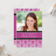Dîner nuptial modèles photo sur mesure invitations dans élégantes couleurs fuchsia rose fushia, noir et blanc classique motif damas floral classique, élégant et féminin, personnalisable avec vos détails de douche. Également disponible en cartes de remerciement et invitations pour la fête de mariage.