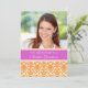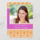 Dîner nuptial sur mesure invitations modèles photo dans élégantes couleurs fuchsia rose fushia, tangerine orange et blanc classique motif damas floral classique, élégante et féminine, personnalisable avec vos détails de douche. Également disponible en cartes de remerciement et invitations pour la fête de mariage.