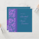 Des invitations nuptiales à déjeuner dans un élégant design de tourbillons violets et bleus paon, élégants et féminins, personnalisables avec vos détails de douche. Également disponible en cartes de remerciement et invitations pour la fête de mariage.