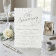 Célébrez un quart de siècle d'amour et de dévotion avec une invitation qui irradie une sophistication intemporelle. Le design capture parfaitement la grandeur d'un anniversaire de mariage d'argent tout en conservant une atmosphère délicate et romantique. Le titre « 25e Anniversaire » est rendu dans une écriture argentée étincelante qui imite l'aspect d'un véritable scintillement, sur un fond blanc épuré à motif damassé. Un mélange réfléchi de calligraphie élégante et de polices serif classiques garantit que les détails de votre événement sont à la fois beaux et faciles à lire. Ce modèle est spécifiquement formulé pour inclure un renouvellement de vœux, ce qui en fait un choix parfait pour les couples qui se réengagent l'un envers l'autre après 25 merveilleuses années. Mettez facilement à jour les noms, la date,