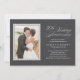 Cartes d'invitation pour les 30 ans de mariage avec un design gris foncé et blanc perle. Téléchargez votre photo de mariage et personnalisez le texte.