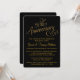 Célébrez un demi-siècle d'amour et de dévotion avec une invitation qui irradie une sophistication intemporelle. Le design capture parfaitement la grandeur d'un anniversaire de mariage d'or tout en conservant une atmosphère délicate et romantique. Le titre « 50e Anniversaire » est rendu dans une écriture dorée scintillante et époustouflante qui imite l'aspect d'un véritable scintillement, sur un fond noir profond. Un mélange réfléchi de calligraphie élégante et de polices serif classiques garantit que les détails de votre événement sont à la fois beaux et faciles à lire. Ce modèle est spécifiquement formulé pour inclure un renouvellement de vœux, ce qui en fait un choix parfait pour les couples qui se réengagent l'un envers l'autre après 50 merveilleuses années. Mettez facilement à jour les noms, la date, le