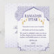 Partagez vos moments d'Iftar avec vos proches en utilisant ces magnifiques cartes, conçues pour ajouter une atmosphère chaleureuse et joyeuse à votre table de Ramadan. Ornées de motifs de croissant de lune et d'étoiles ainsi que de couleurs vibrantes de Ramadan, elles constituent une invitation charmante pour toute la famille et les amis.