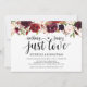 Cette carte d'invitation thématique florale bordeaux champêtre est parfaite pour votre réception de mariage / célébration de fête. Ajoutez vos coordonnées avec une police / lettrage noir assorti.