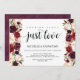 Cette carte d'invitation sur le thème floral bordeaux champêtre est parfaite pour votre réception de mariage / célébration de fête. Ajoutez vos coordonnées avec une police / lettrage noir assorti.