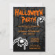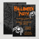 Cartes d'invitation pour soirée de costumes d'Halloween avec toile d'araignée. Invitations personnalisées avec un design d'araignée effrayant. Amusant pour les enfants et les adultes. Texte d'annonce et couleur de fond personnalisables. Couleurs noire et orange. Également pour les fêtes d'anniversaire des enfants.