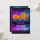 Invitations amusantes pour Halloween avec un slogan humoristique accrocheur. Comprend des citrouilles et des tournesols. Pour une fête monstrueuse qui sera sûre d'être un succès ! Chaque police est personnalisable ! . Magnifique fond rose et violet. Ces cartes magiques seront sûres d'impressionner chaque lutin, gobelin et sorcière que vous inviterez !