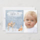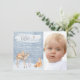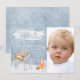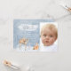 Invitation pour une fête d'anniversaire Winter onederland avec de mignons animaux de la forêt peints à l'aquarelle sur un fond de flocons de neige bleus avec espace pour une photo. Cette invitation fantaisiste pour un premier anniversaire sur le thème de l'hiver avec des cerfs, renards, lapins et écureuils est facilement personnalisable pour votre événement en ajoutant simplement vos coordonnées, et convient aussi bien pour un garçon que pour une fille.