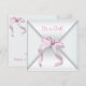 Invitation élégante pour une baby shower avec un thème de bébé fille avec un nœud rose. Ajoutez vos informations au recto et au verso de cette invitation pour baby shower rose en choisissant simplement le bouton "Personnalisez-le !" pour commencer à ajouter les détails de votre événement, le style de police, la taille et la couleur de la police, ainsi que le texte. Veuillez noter que tous les modèles d'invitation que vous trouverez sur Zazzle sont des créations graphiques imprimées sur du papier plat, sans véritables bijoux, nœuds, reliefs, gaufrages ou pièces ajoutées.