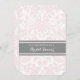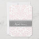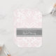 Des invitations nuptiales dans d'élégantes couleurs pastel rose pâle, gris fusain foncé et blanc classique floral damask vintage motif, chic et féminin, personnalisable avec vos détails de douche. Également disponible en cartes de remerciement et invitations pour la fête de mariage.
