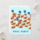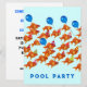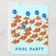 Cartes d'invitation pour une fête au bord de la piscine avec des poissons d'école drôles.