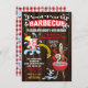 Cartes d'invitation pour une fête au bord de la piscine en bois rustique et BBQ. Caractéristiques un grill rouge, boisson fruitée et éclaboussures d'eau, Le dos est avec un motif gingham rouge et plus d'éclaboussures d'eau. Idéal pour une fête d'anniversaire d'été, fiançailles ou fête de remise de diplôme adulte.