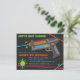 Organisez une fête d'anniversaire amusante en accueillant la fête dans un centre de jeu de laser tag ! Testez l'agilité, la visée et les compétences d'équipe des enfants invités. Cette invitation comporte des lumières laser néon colorées qui traversent l'invitation décorée d'une cible et d'un pistolet jouet de laser tag. Convient aux enfants et aux adolescents, en particulier pour les garçons qui fêtent leur anniversaire ! Personnalisez facilement avec les détails de votre fête.