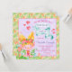 Cartes d'invitation pour une fête d'anniversaire de troll avec un troll aquarelle mignon sur un fond floral aquarelle avec une bannière aquarelle bleu sarcelle et des cœurs. Cette invitation de fête d'anniversaire troll adorable est facilement personnalisable pour votre événement en ajoutant simplement vos coordonnées.