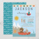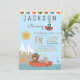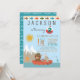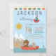 Cartes d'invitation pour une fête d'anniversaire de pêche avec un ours et un lapin de la forêt mignons pêchant dans un bateau sur fond de lac de montagne à l'avant et un motif d'eau à l'arrière. Ces cartes d'invitation pour une fête d'anniversaire de pêche pour n'importe quel nombre sont facilement personnalisables pour votre événement en ajoutant simplement vos coordonnées. Vous pouvez également changer la couleur de fond de ces adorables cartes d'invitation pour une fête d'anniversaire de pêche.