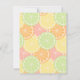 Laissez-vous rafraîchir par la chaleur de l'été avec cette invitation estivale fruitée ! Le design utilise un motif réalisé à l'aide de formes géométriques circulaires de tranches d'agrumes dans les couleurs du citron, de l'orange, du citron vert et du pamplemousse, ce qui donne une ambiance rafraîchissante et cool. Idéal pour toute fête d'anniversaire sur le thème de l'été et pour les adolescents ! Personnalisez facilement avec les détails de votre fête.