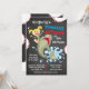 Fête d'anniversaire piscine thème requin totalement géniale ! Faites une grosse bouchée de l'anniversaire de votre enfant avec ces superbes invitations d'anniversaire thème requin. Un garçon mignon chevauche un requin féroce avec des éclaboussures d'eau et de grosses morsures. Version fille blonde.