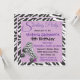 Cartes d'invitation super cool pour une fête de patin à roulettes avec une impression d'animal zèbre sur un fond violet et zèbre. Idéal pour les anniversaires, les adolescents et les enterrements de vie de jeune fille. Illustration dessinée à la main par McBooboo. Merci de me contacter pour toute question ou modification.