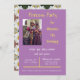 Image d'une fille qui fête son anniversaire et d'une princesse sur fond violet à l'avant avec les détails de la fête et des images de marguerites au dos.