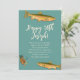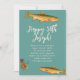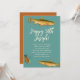 Cartes d'invitation d'anniversaire pour un pêcheur adulte masculin. Design de leurre de pêche à la mouche et truite mouchetée sur papier bleu-gris avec texte blanc cassé. Personnalisez facilement avec son nom, en script gras, en haut. Toutes les informations sur la fête sont ajoutées sous forme de paragraphe. Choisissez les options d'impression et / ou de téléchargement. Le verso est de couleur orange rouille uni.
