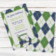 Cliquez sur les liens en argyles verts et bleus marine ! Ajoutez votre touche personnelle à ces invitations. Cliquez sur "modifier le design" pour changer la police, la taille de l'image, etc. Transférez également ce design sur les produits de votre choix ! Photo de couverture par RawPixel.com. Veuillez visiter ma boutique de créateur, PreppyPrint.com, pour des articles coordonnés, y compris des fournitures de fête et des cartes de remerciement.