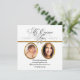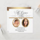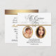 Belle invitation de Quinceanera avec photo de bébé et photo actuelle blanche et or. Cette douce invitation de Quinceanera photo or comporte un élégant ruban et nœud or avec des cadres ovales or pour deux photos de votre belle fille - une en tant que bébé et l'autre telle qu'elle est maintenant. Personnalisez cette élégante invitation de Quinceanera photo blanche et or en ajoutant vos photos, détails de l'événement, style de police, taille et couleur de police, et libellé.