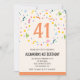 Cartes d'invitation simples pour 41e anniversaire Confetti Moderne calligraphie typographie étape classique élégant coloré féminin