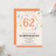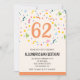 Cartes d'invitation simples pour 62e anniversaire Confetti Moderne calligraphie typographie étape classique élégant coloré féminin