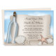 Cartes d'invitation élégamment illustrées pour une réception de mariage sur la plage dans une bouteille avec des coquillages, des dollars de sable, une étoile de mer et un dessin de bouteille transparente avec une illustration de message sur papier et un ciel bleu en arrière-plan, réservées à la réception. Ces invitations réservées à la réception de mariage sur la plage sont utilisées lorsque le couple a un mariage de destination ou une petite cérémonie privée et n'invite ses invités qu'à la célébration de réception après le mariage. Elles constituent une option abordable pour un mariage sur le thème de la bouteille à la mer.