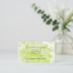 Jolie petite carte de boîtier mariage, avec élégante illustration graphique abstraite verte de feuilles tourbillonnants. Customisez le texte en fonction de vos besoins.