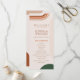Cartes de programme modernes, recto-verso, aux formes arc. La couleur principale de la carte programme est le beige, avec des formes arc dans les tons vert foncé, rouille et terre cuite. Collection : https://www.zazzle.com/collections/boho_arch_abstract_wedding_collection-119061662657911589