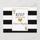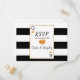 Carte postale moderne de RSVP avec des bandes noires et blanches | Une bordure dorée fantaisie et des cœurs représentent les cartes de visage, la reine et le roi de cœur. Vous pouvez remplacer le Q et le K par les initiales des noms de la mariée et du marié. Parfait pour un thème de mariage de style Vegas ou casino. N'hésitez pas à me contacter si vous souhaitez des articles assortis. Œuvre d'art par ChanDraws Art & Design