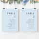 Aidez vos invités à trouver leur table avec ces élégantes cartes modernes de plan de sièges avec le nom des invités. Cartes recto verso pour que les clients puissent chercher leur nom à l'avant ou à l'arrière. Libérez de l'espace tout autour en vous donnant la liberté d'utiliser des clips ou des trous de poinçonnage pour accrocher des écrans, ou d'utiliser un support/cadre de table. Design élégant et simple bleu poussiéreux avec typographie moderne en bleu. Une partie de notre collection "Modern Elegant Typography Blue Mariage" avec une variété de produits de coordination, y compris un ensemble complet de signalisation mariage. Visitez la collection entière à l'adresse suivante : https://www.zazzle.com/collections/modern_elegant_typography_blue_wedding_collection-119316758339581837