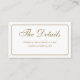 Ces élégantes Cartes de Boîtier Blanc et Or sont minimalistes, traditionnelles et classe. Ils sont entièrement personnalisables, vous permettant de personnaliser l'avant et le dos selon vos souhaits. Pour commencer, cliquez simplement sur "Personnaliser ce modèle". Si vous cherchez un décor mariage assorti dans ce thème élégant, explorez notre collection complète - une façon simple et agréable de préparer tous les détails pour votre journée spéciale. Si vous incluez un code QR sur votre site Web mariage, ne le rendez pas trop petit et assurez-vous qu'il est de bonne qualité. N'hésitez pas à contacter si vous avez des demandes ou des questions.