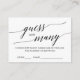 Ces cartes élégantes de calligraphie pour deviner le nombre de bisous sont une activité amusante pour une simple douche de mariage. Remplissez un pot avec des baisers de Hershey et demandez à vos invités de deviner combien de bonbons s'y trouvent. La réponse la plus proche gagne un prix ! Le design neutre présente une carte de jeu minimaliste décorée d'une typographie romantique et fantaisiste.