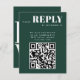 Vous recherchez une carte RSVP moderne et élégante pour le code QR Mariage ? Regardez nos Cartes RSVP Émeraude Vert pour Code QR Mariage. Doté d'une calligraphie audacieuse qui ajoute une touche de sophistication, ce rsvp vert émeraude avec code qr offre un look propre et simple. Vous pouvez ajouter une URL pour générer un code QR. Ce rsvp de mariage minimaliste a une torsion moderne qui va captiver ceux qui ont l'oeil pour une sophistication subtile. Carte de code qr de mariage rsvp minimaliste !