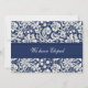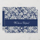 Cartes Elopement en bleu marine foncé élégant et crème blanc classique motif damassé floral, entièrement personnalisable avec vos noms et détails mariages, la manière parfaite d'annoncer votre elopement à vos amis et votre famille. Disponible dans une large gamme de produits mariages correspondants.