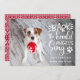 Cette carte de vœux fantaisiste présente une photo préférée de votre chien avec "Bark ! Les anges de la heraldique chantent" en superposition de texte blanc aligné à droite dans une typographie manuscrite accentuée d'une empreinte de patte. Personnalisez avec votre message personnalisé et vos noms en dessous.
